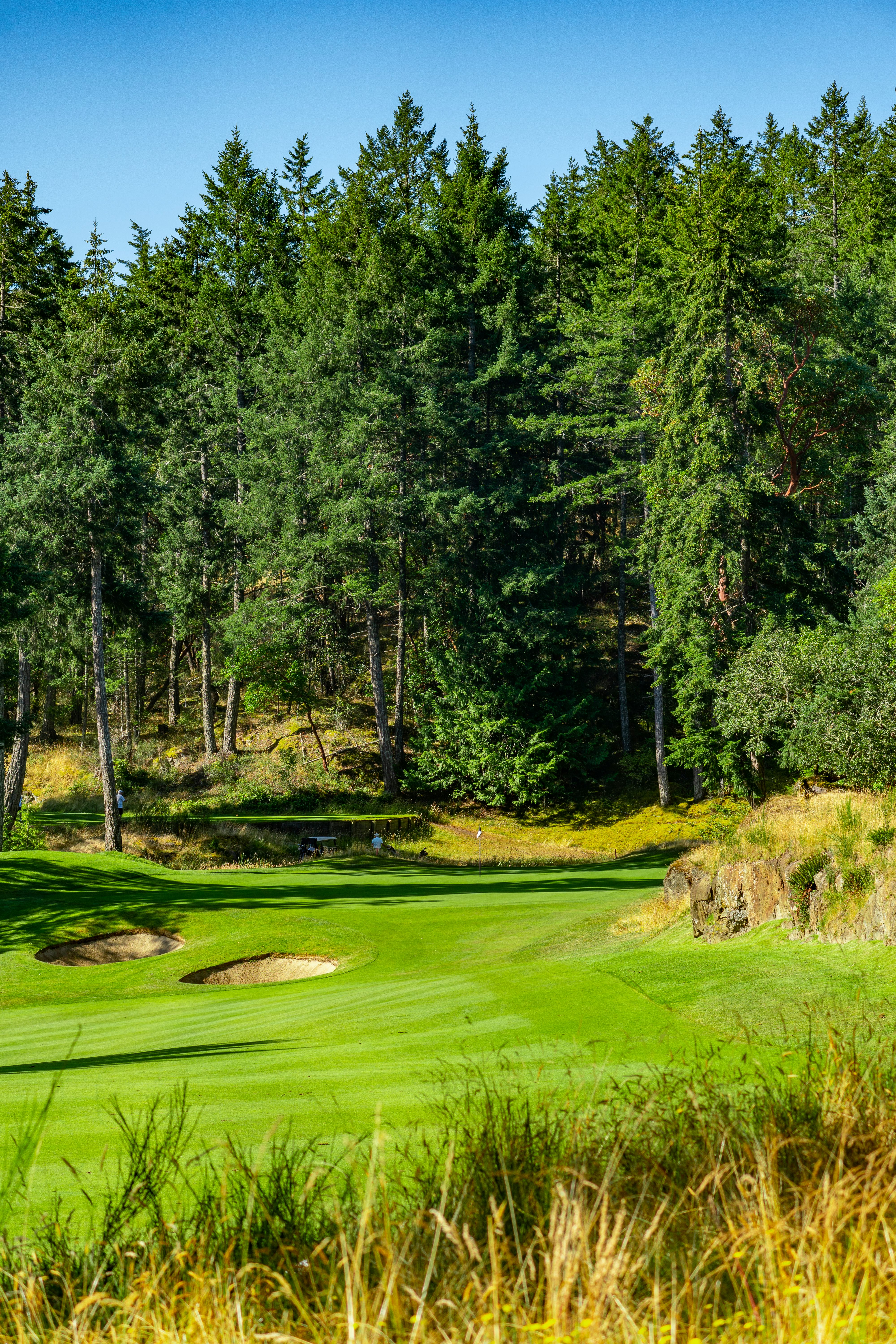 The left bunker is positioned to gobble up errant shots aimed at the back portion of the green.